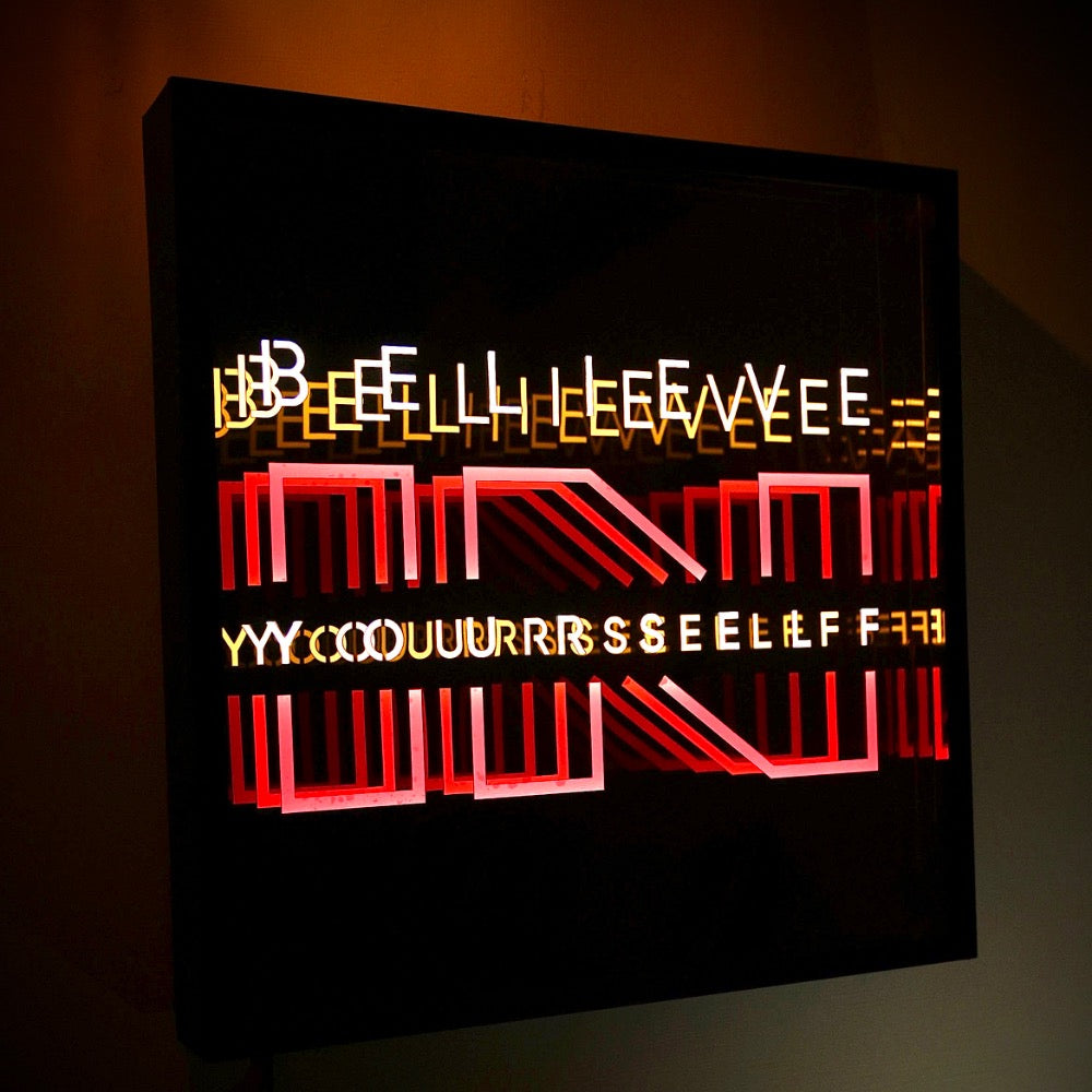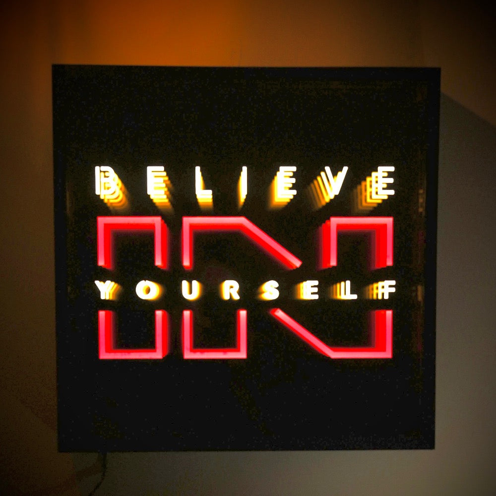 Crafted from premium acrylic glass and illuminated with energy-efficient LED lighting, it creates a deep infinity illusion that feels steady, grounded, and powerful. The clean design and soft glow make it a constant reminder that confidence doesn’t need to be loud — it needs to be unbreakable.